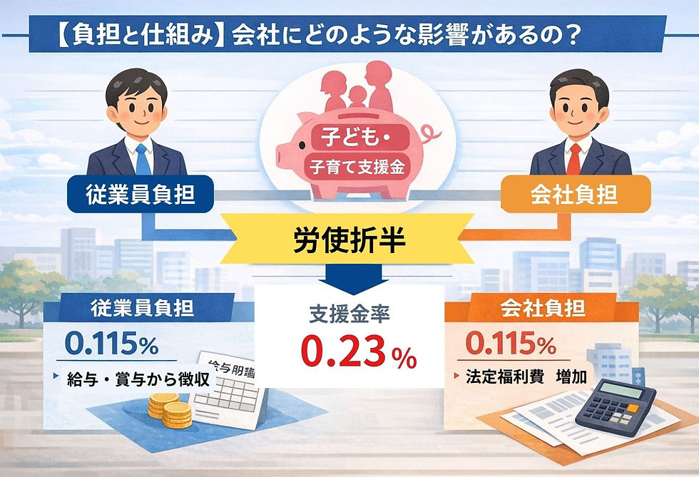 令和8年4月以降、社会保険料の計算に「子ども・子育て支援金(0.23%)」を追加する必要があります。給与システムの確認をしましょう。
